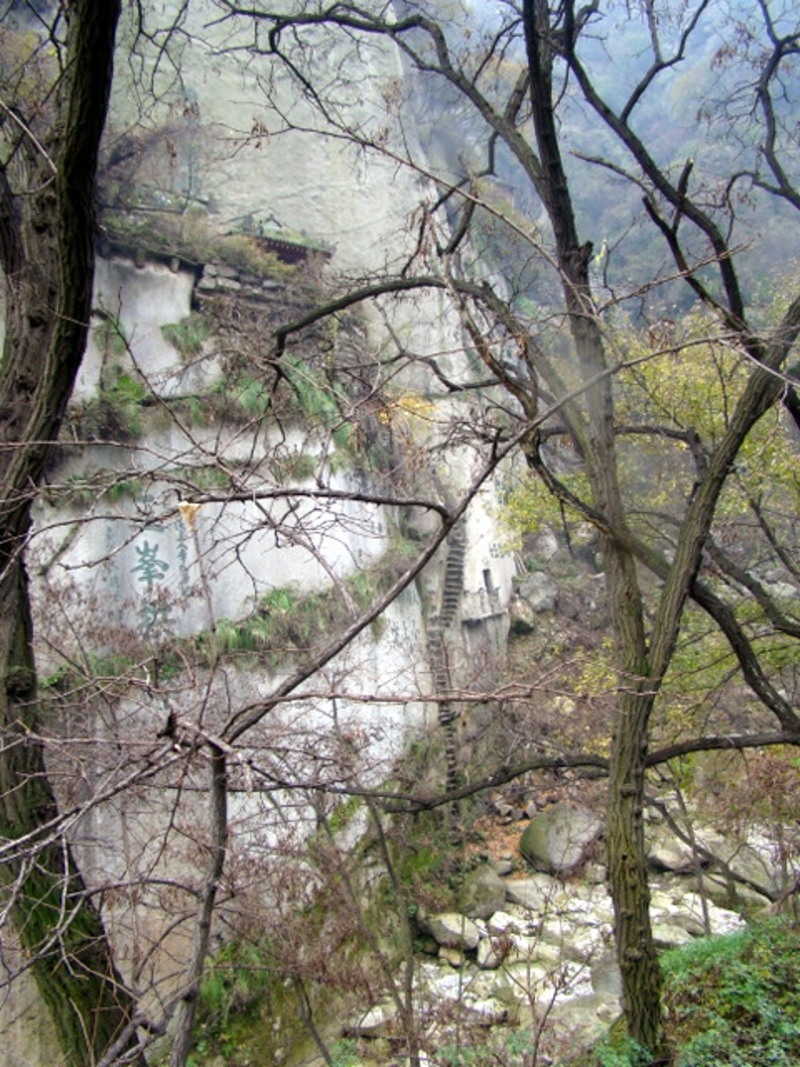 同伴累的坐在长椅上不动,我四处转悠。这个陡壁上有凿出的阶梯,向上通到一间生生在石头中凿出的小房子。房门紧闭。我想这得需要多大的毅力,费多大的功夫,多久的岁月,才能在半壁上凿成这样呢。