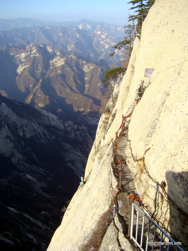 原计划从智取华山路下山,太累啦,放弃,改走索道。这是网上找到的智取华山路照片