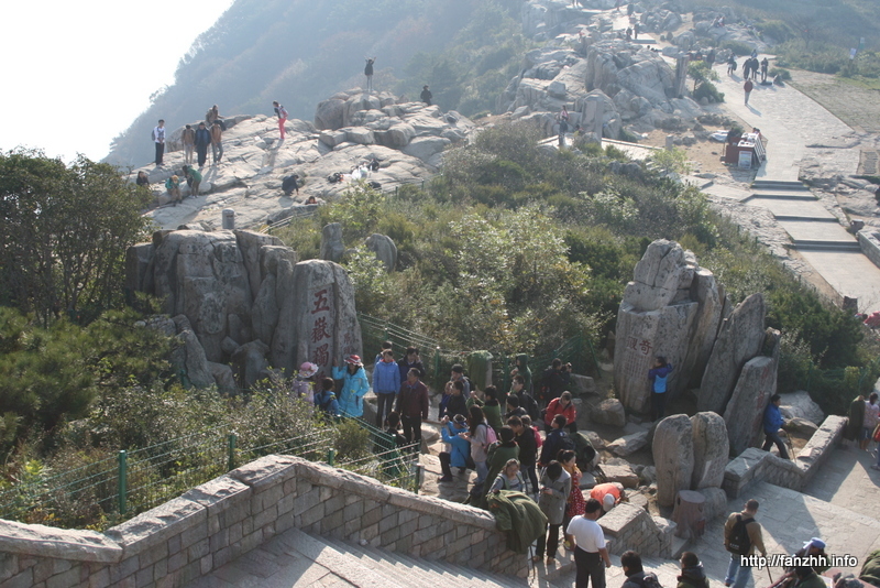 位于玉皇顶西北的丈人峰,形状好像老翁伛偻着背而得名。附近又有数块稍小之石相配,因此又有“老翁弄孙”之称。 峰上石刻有“天下第一山”、“凌霄峻极”、“中天独立”、“东柱第一灵区”等等,并有乾隆所留诗刻:“丈人五岳自青城,岱顶何来假借名。却是世人知此惯,谁因杜老句详评。”此外这里还有外国人所留题刻,1990年日本书法家柳田泰云书“国泰民安”在此留书。 峰南建有广播电视转播台(来自百度百科)。不过我没看出来哪儿有老翁的形状。