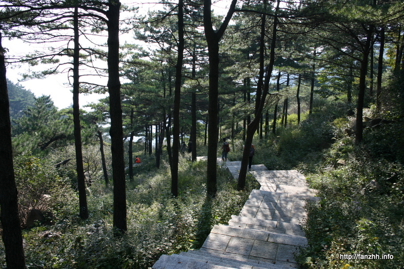 一路是这样的石板小道,道旁密密的山林,其中有松树,更多的是不知名字的树木。