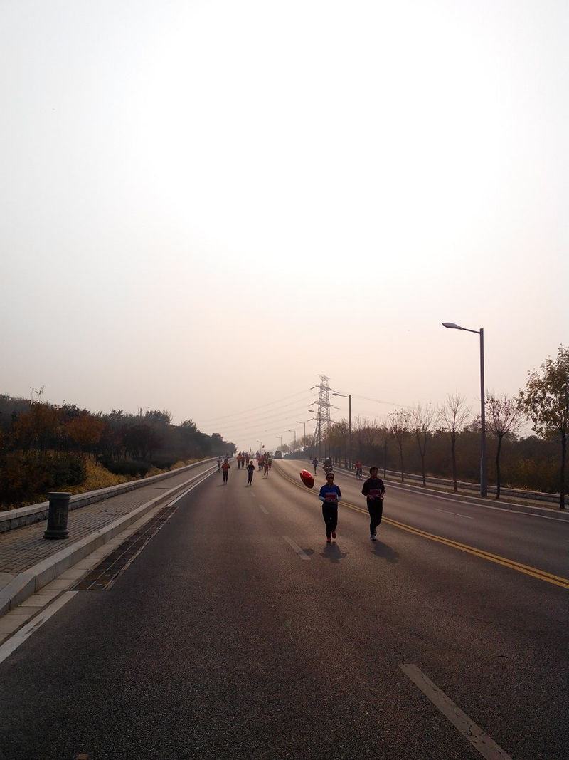 报名也不一定参加嘛,也许到时工作忙,或被其他事儿耽搁走不开也说不定。尽管存在这样的侥幸想法,练习还是自觉地加紧进行。跑的次数更多,距离也更长。最远的距离,是去北湖跑过一次30公里,老实说结束时累的跑不动了。其次跑过一次27公里,在体校刷圈跑了一次21公里。练习总应该跑一次足额的42吧,但我没有,随着这样的忐忑,日子流水一样波澜不惊地过去,赛期越来越近。